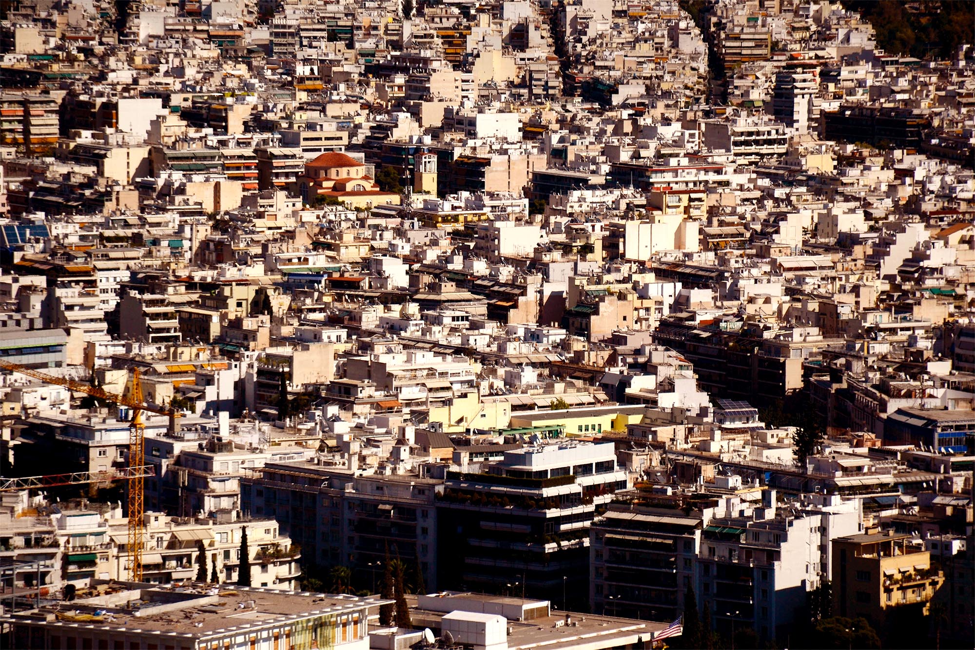 In these hard times, it seems like we’ve lost our sense of place – as if public space has become a forgotten concept, a buffer zone that we cross rarely and only out of necessity. Locked in our homes, in front of screens, living in a parallel virtual reality. The non-virtual reality is still here though, right out of our doors; perhaps less vibrant, less loud, but still smouldering. With some kind of foresight, two months ago I climbed on a hill of Athens, without any specific purpose, but luckily with my camera in hand. The photographs I took on that day have since become a medium of remembering the image of the city; and imagining its life unfolding behind closed doors. People might be socially and physically distanced, but they carry on with their lives in this tight and dense container that is Athens.